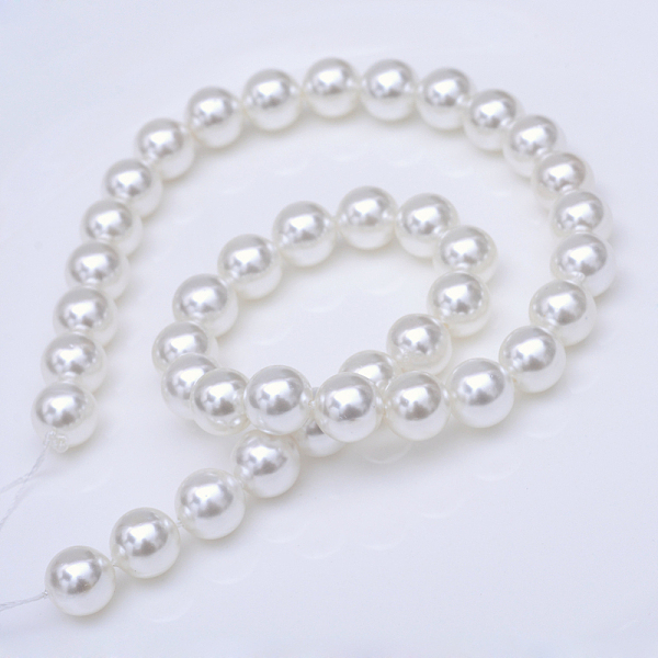 имитация жемчужной бусины , класс А, круглые, снег, 10 мм, отверстие : 1 мм, 38-40 шт / нитка, 15.7 дюйм
